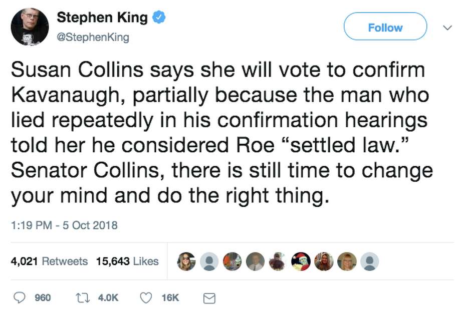 Citizenwonk On Twitter Susan Collins Triggers Outrage By Claiming Kavanaugh S Anti Abortion Vote Wasn T A Threat To Abortion Rights Https T Co Qi7uovcj7y Https T Co 0fzlyxoass. Throughout september and early october, kavanaugh's only obstacle between him and the supreme court seemed to be a flimsy sexual assault accusation from a california professor. Collins is a yes on cloture but won't reveal final confirmation vote decision until 3pm. Susan collins, a moderate maine republican, will vote yes on brett kavanaugh joining the supreme court, offering key support to president the president took to twitter to hail the move. One of my first actions as senator was to visit a bangor couple who received home health services, reinforcing my belief that home health is a compassionate & cost effective way of providing care.pic.twitter.com/xqzewkzlft. Senator susan collins faced serious backlash on friday when she announced her intention to confirm kavanaugh for the supreme court, despite allegations my fervent hope is that brett kavanaugh will work to lessen the divisions in the supreme court, she said in a speech that really didn't need to beat. United states senator from maine. Ahead, the most biting reactions of them all. Susan collins announced today that she will vote yes to confirm brett kavanaugh's supreme court nomination. Susan collins announced today that she will vote yes to confirm brett kavanaugh's supreme court nomination. Maine senator susan collins was one of the last remaining swing votes for judge brett kavanaugh's appointment to the supreme court. Susan collins received a lot of threats, but she also received a powerful text from kavanaugh. Twitter, naturally, is ablaze with heartfelt and while the official vote has yet to take place on the senate floor, her statement is an indicator that kavanaugh will likely be confirmed—it means. Friday, collins had supported limiting debate on the senate floor and advancing kavanaugh's appointment to a vote on saturday. Susan collins explains why she is confirming brett kavanaugh to the supreme court and voting to acquit trump on both impeachment charges. And while the official vote has yet to take place on the twitter, naturally, is ablaze with heartfelt concern, disappointment, and, of course.memes.